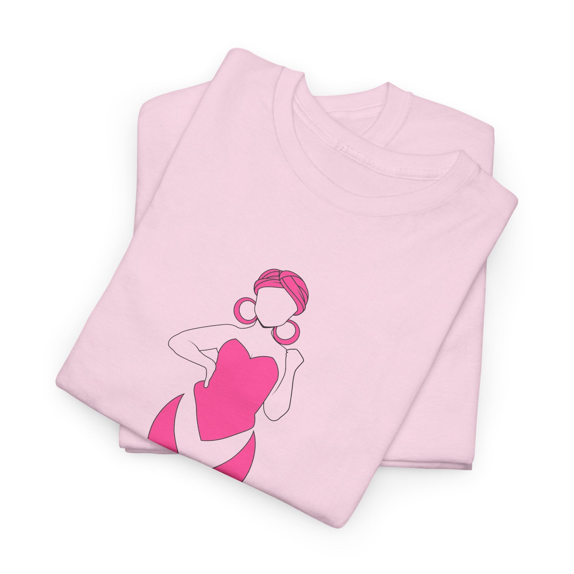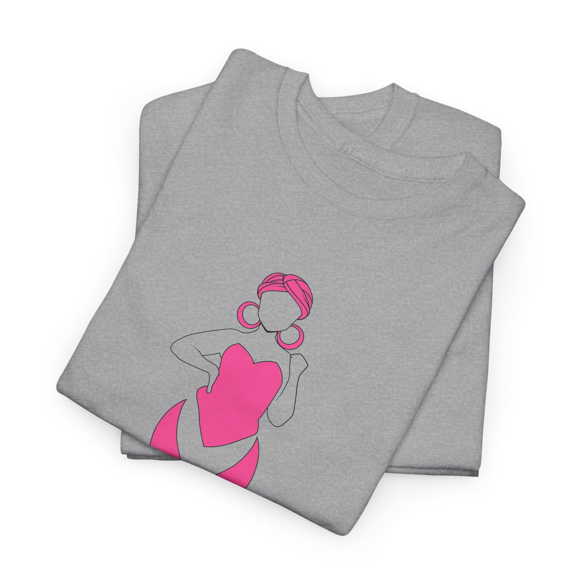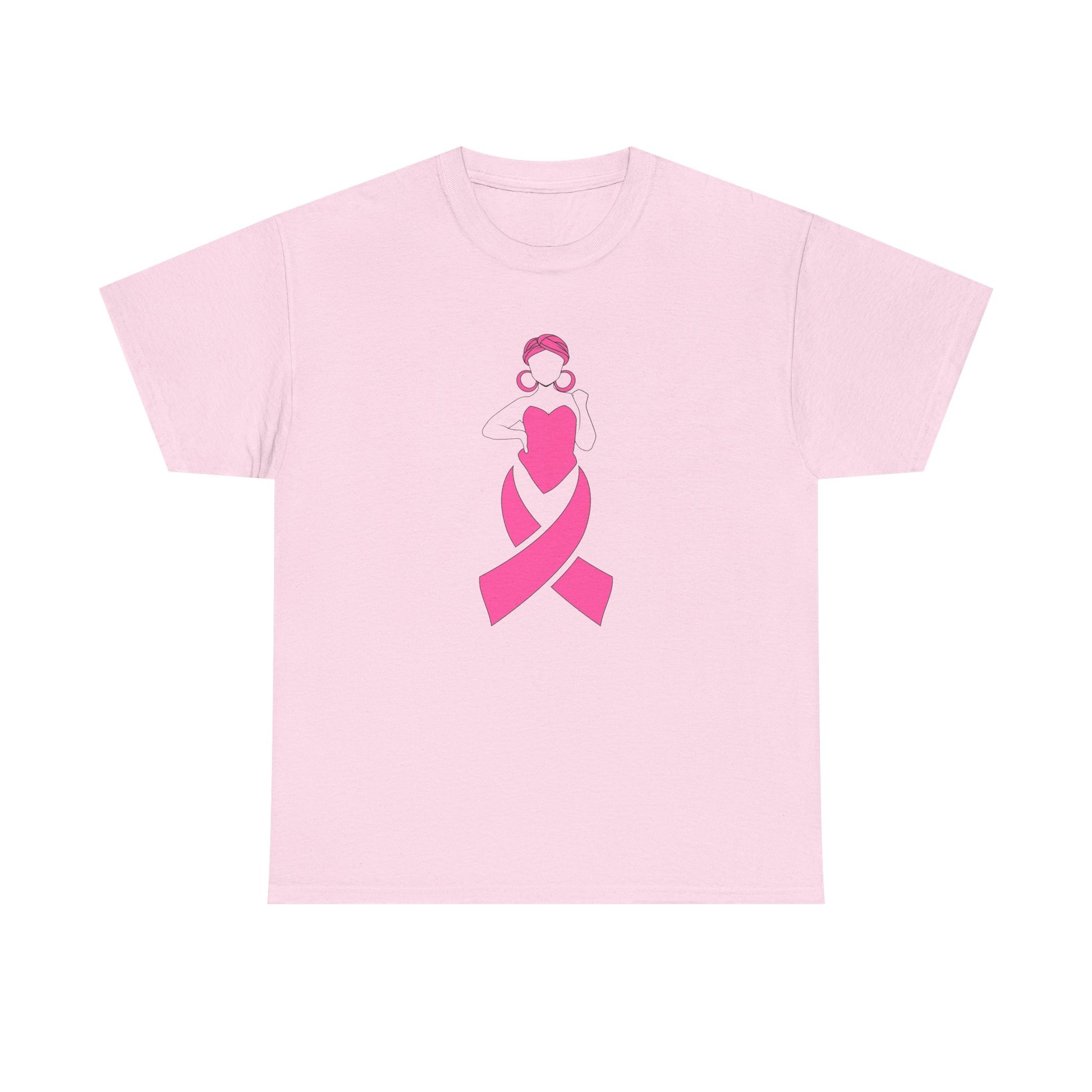 This tee carries a quiet, powerful message. A simple pink ribbon forms the silhouette of a woman—soft lines, a small bun and hoop earrings—bringing warmth and dignity to an emblem of survivorship and support. The shirt sits comfortably in everyday life: worn to awareness walks, support-group meetups, or folded into a care package for someone facing treatment. It reads as both personal and communal — a calm, visible way to stand with someone you love, or to carry your own story with quiet pride. Lightweight but sturdy, the tee lets the design do the talking without shouting. It’s familiar in the closet, meaningful in the moment.