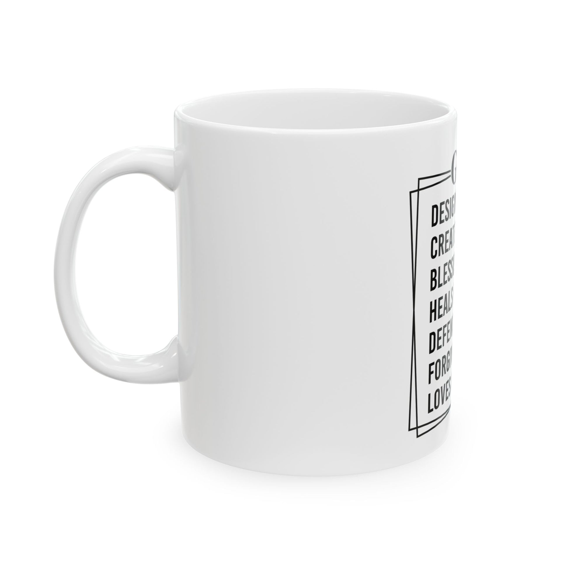 This God Designed Me Ceramic Mug is perfect for those seeking inspiration and faith in their daily lives. With its vibrant colors and durable white ceramic material, this mug is both functional and visually appealing. It is suitable for anyone looking to add a touch of spirituality to their morning routine or for a thoughtful gift for religious holidays and special occasions.