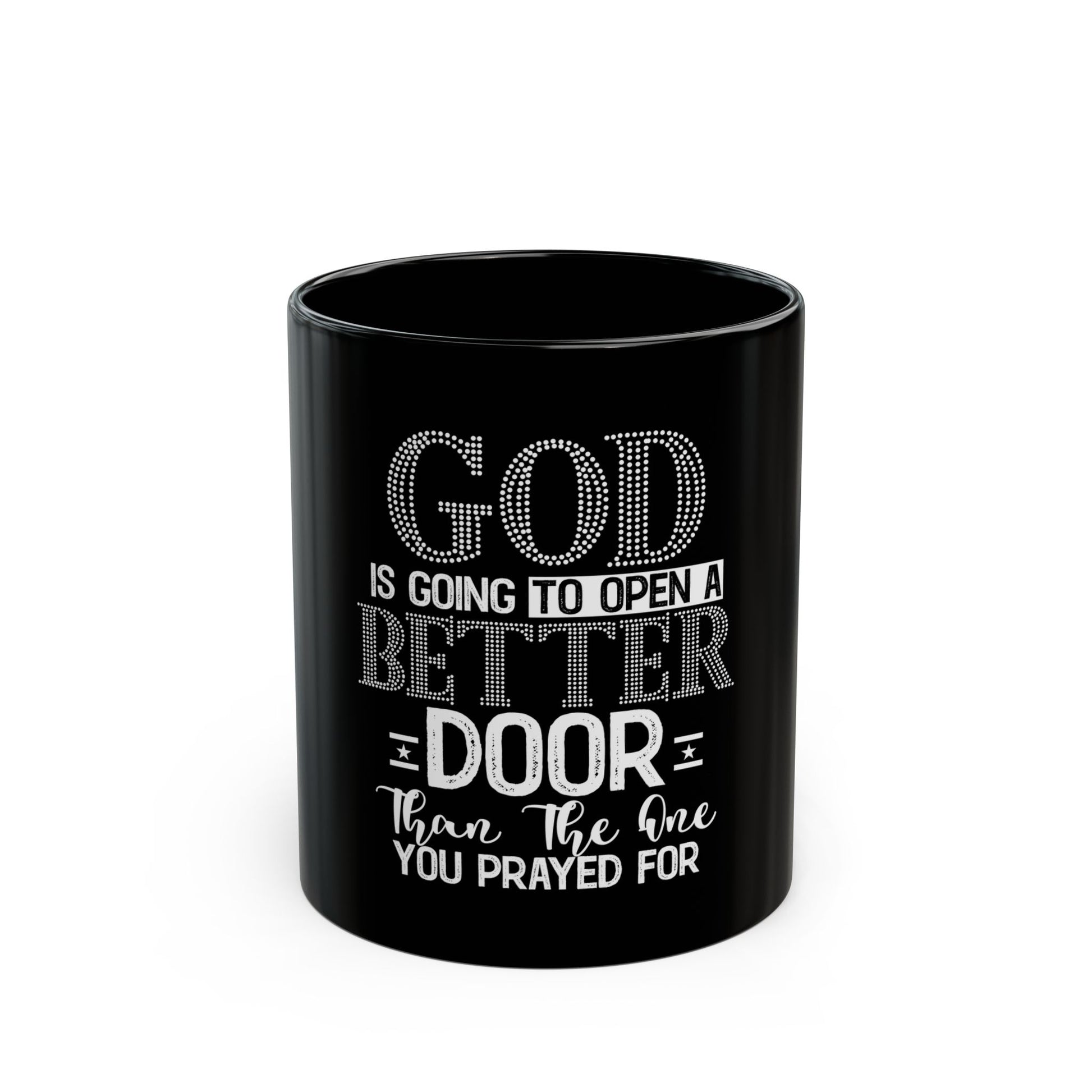 Inspirational Black Mug - "God is Going to Open a Better Door"